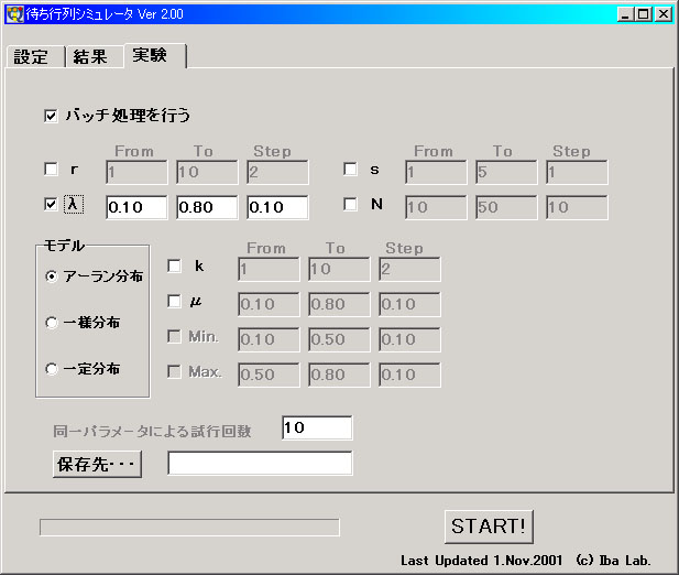 ・指定したパラメタを指定した範囲で動かして実験し、データをファイル保存する機能をつけました(ただし、数値のみ)。