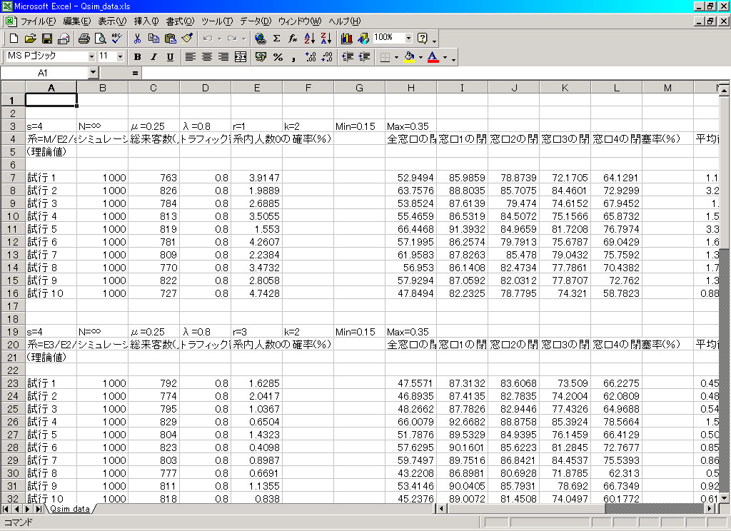 ・設定された終了時刻まで来客の可能性があります。系内に客が残っていても設定された終了時点までのデータによって統計をとるようにしてあります。