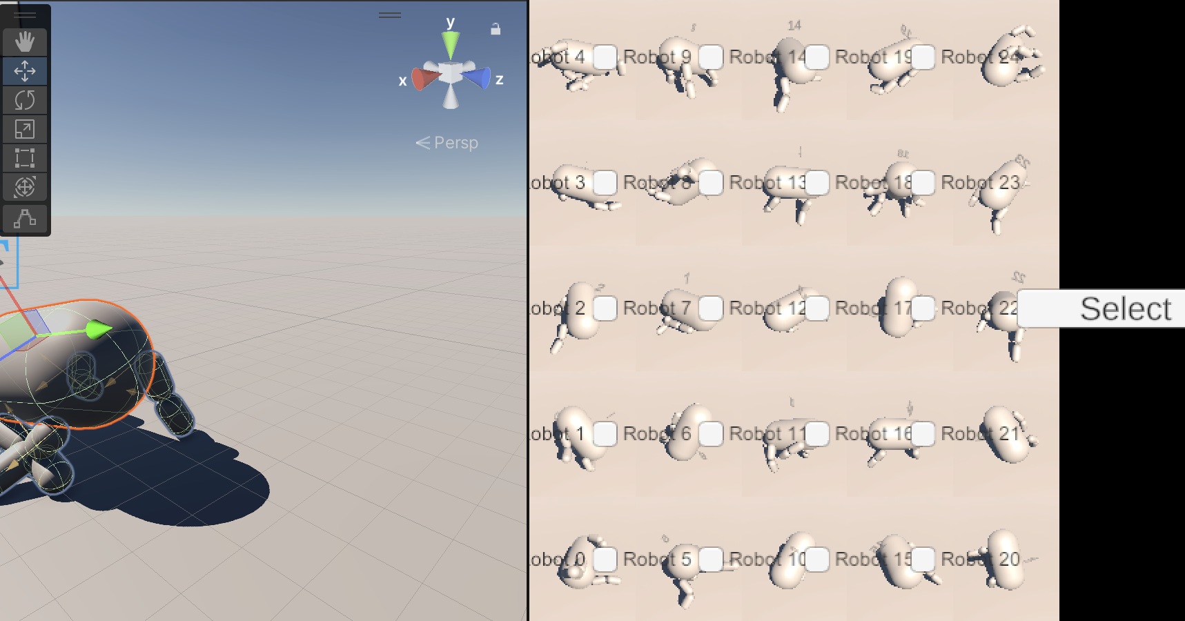 対話型進化計算による動作デザイン survival rateのスライダーは生存率を決定します。 チェックボックスで選択した個体が「良い」個体とされ、「良い」個体は生存する確率が高くなります。 「select」をクリックすると進化が進みます。 [プログラム(1.5MB)] |